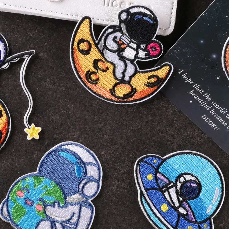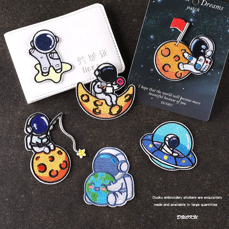 Самоклеящиеся нашивки для одежды в виде астронавта, наклейка для одежды, термоклейкая аппликация, нашивка в полоску с изображением планеты, космоса, корабля