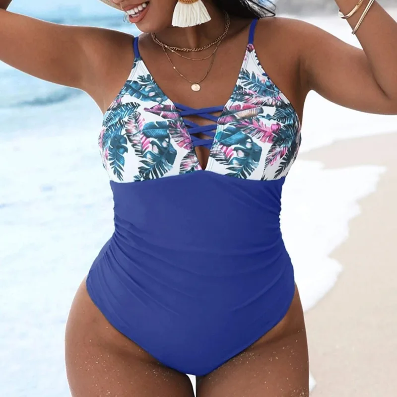 Новый цветочный сексуальный цельный купальник большого размера с пу...