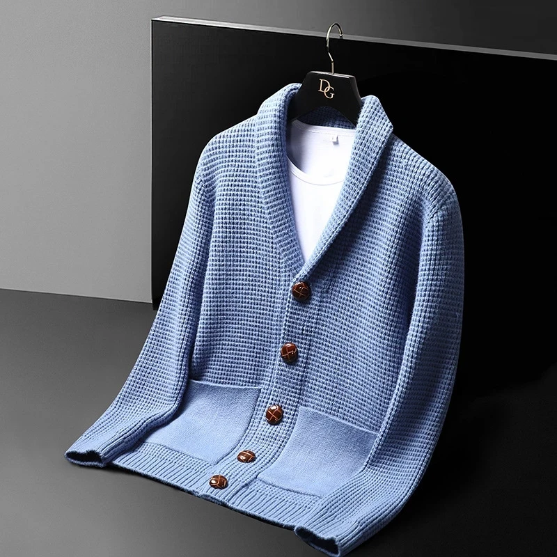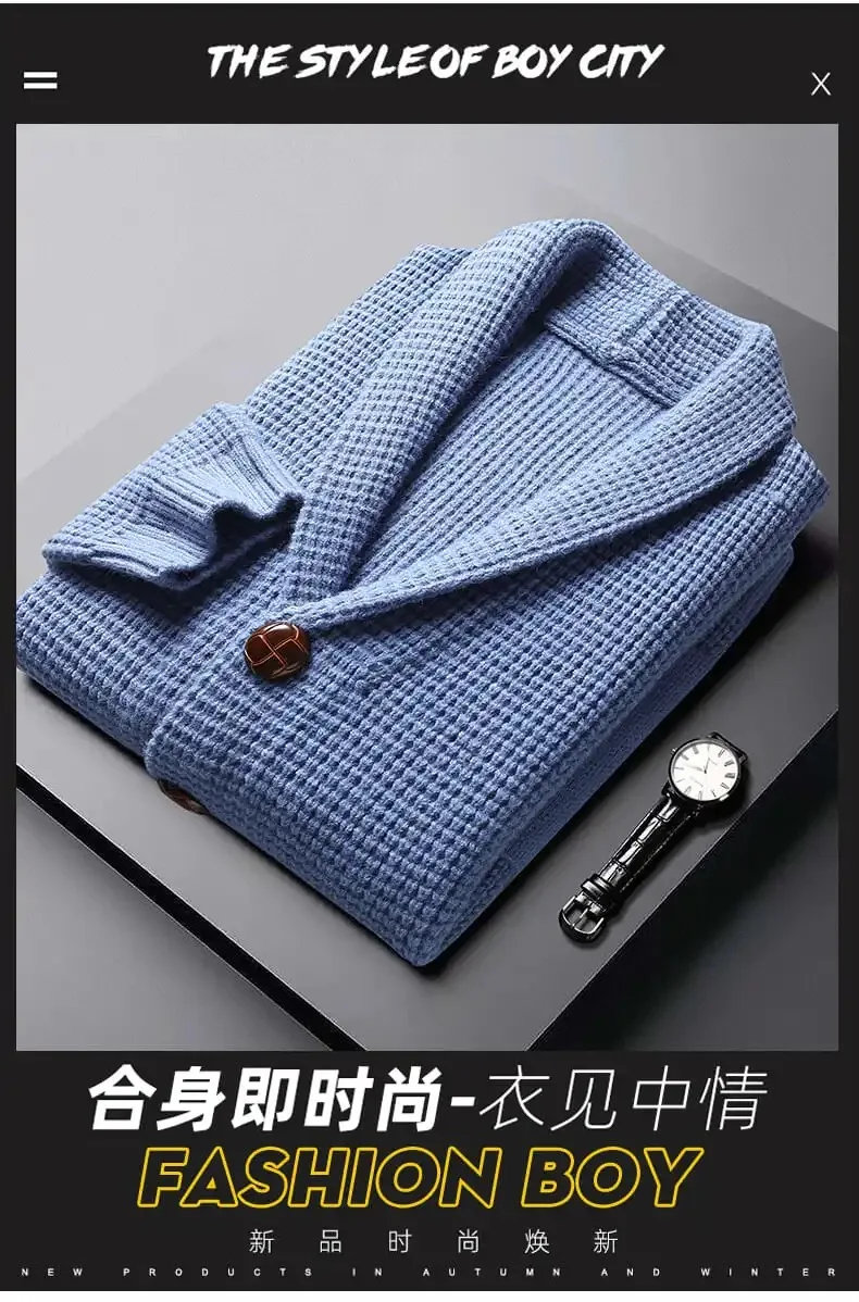 Простой европейский бутик 2021 новый осенний свитер кардиган мужская вязаная куртка корейский однотонный Высококачественный свитер в Корейском стиле