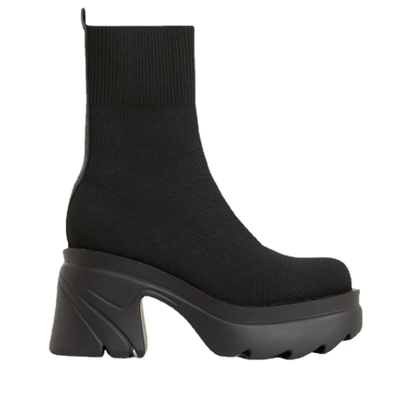 Женские ботинки на платформе, черные мотоциклетные ботинки с сетчатым верхом, увеличивающие рост, большие размеры до 43