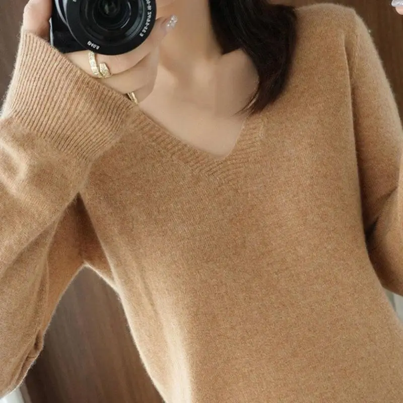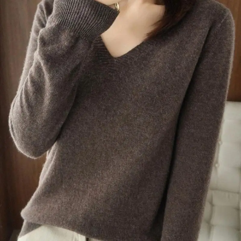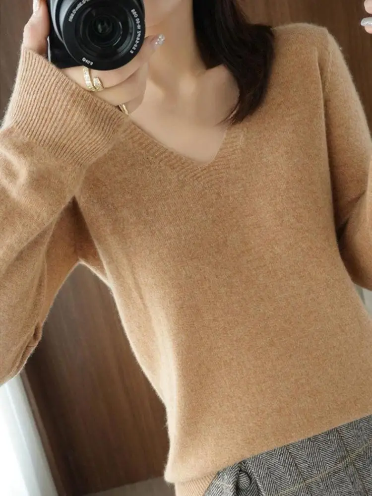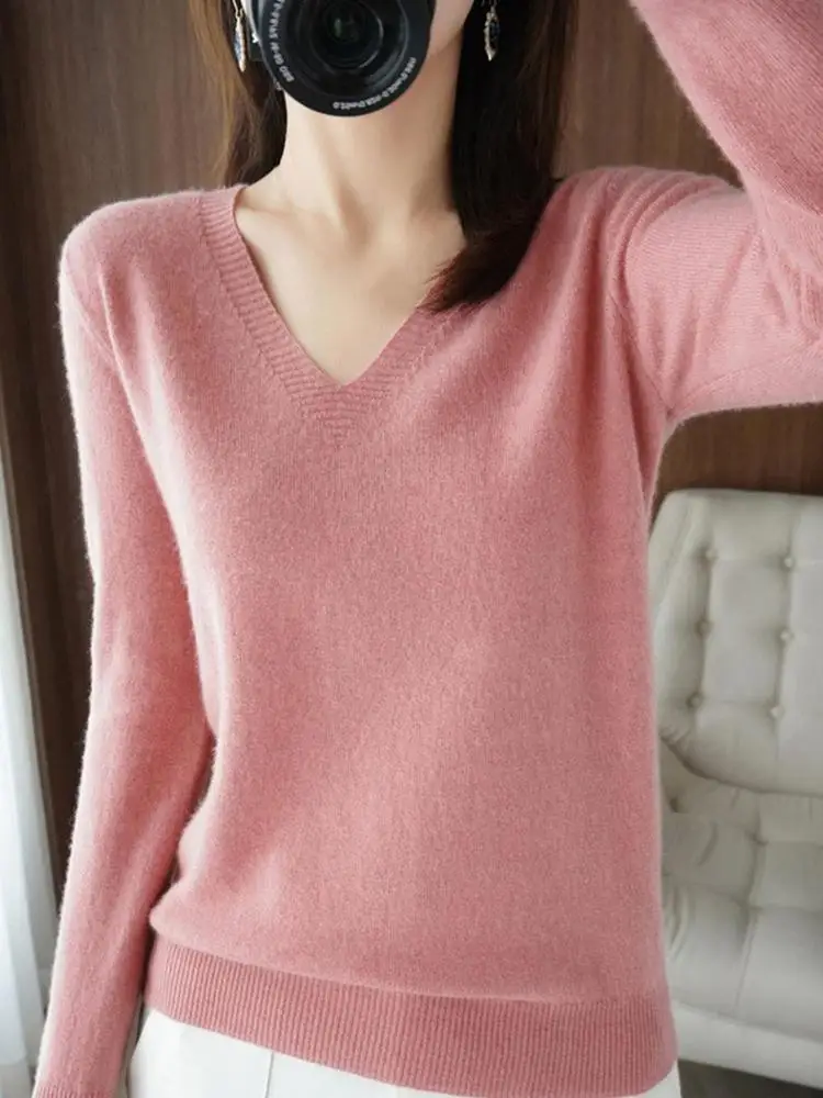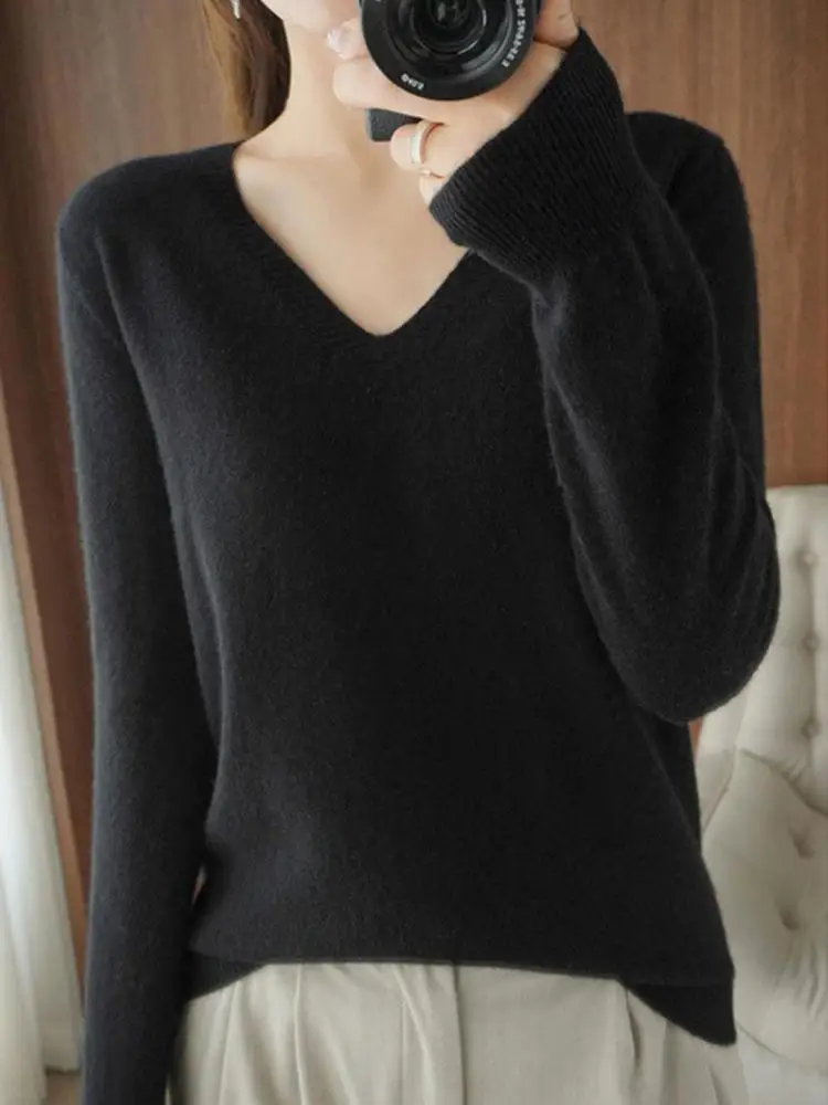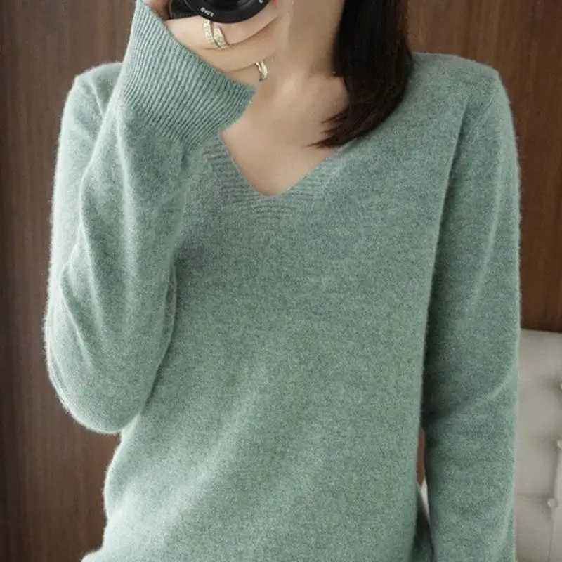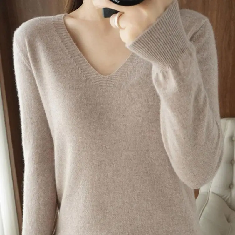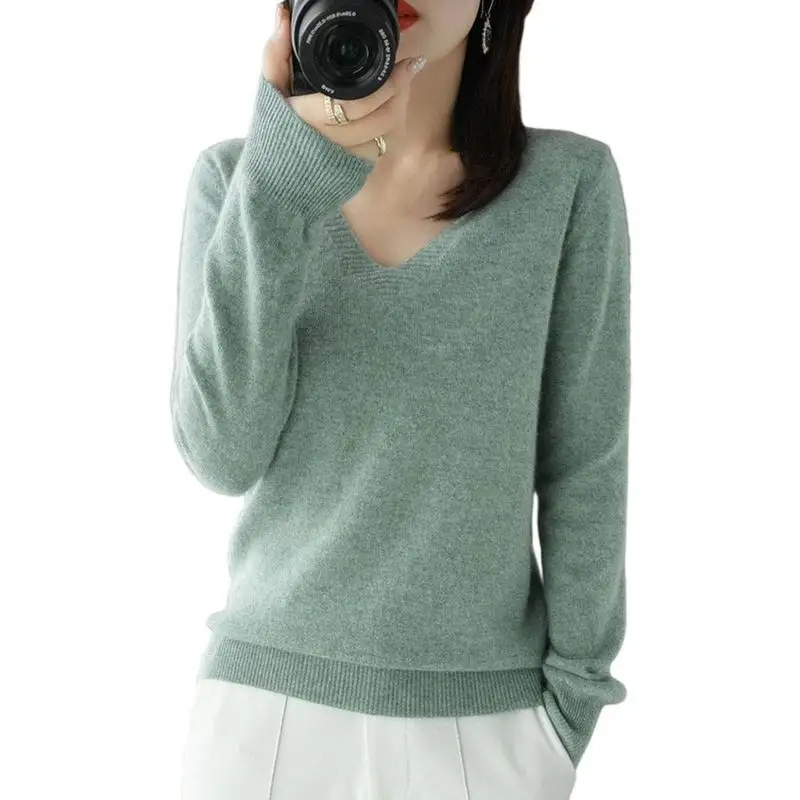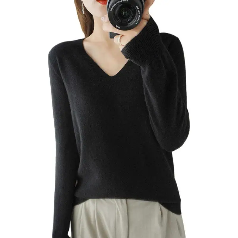 Весенне-осенний кашемировый свитер с V-образным вырезом, Женский пуловер, дизайнерские ажурные повседневные Кашемировые топы с кружевным воротником, вязаный женский свитер K5o7