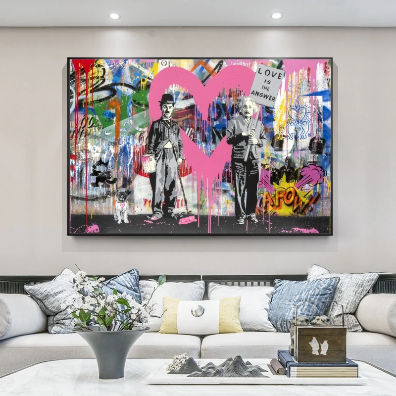 Граффити Бэнкси, поп-арт, картины на холсте Чаплин и Эйнштейн, настенные художественные картины для гостиной, домашний декор (без рамки)