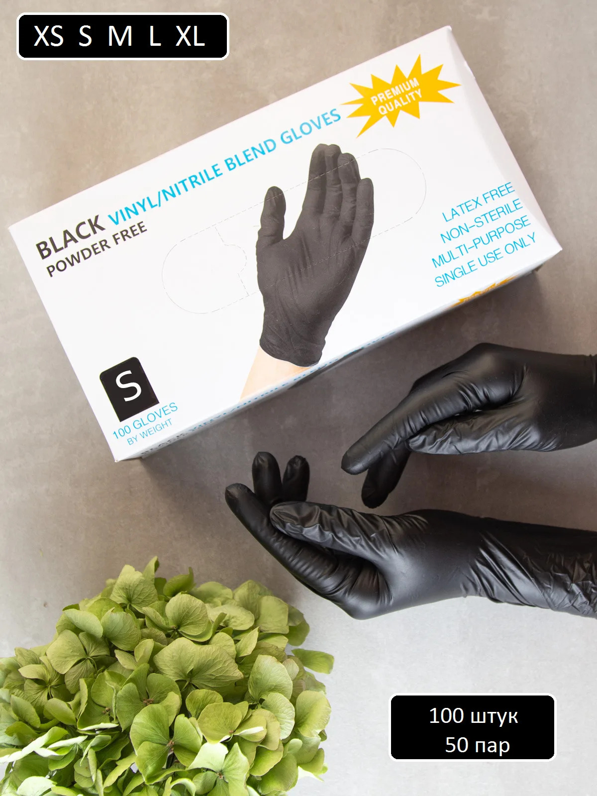Перчатки одноразовые Wally Plastic 50пар 100шт нитрил винил черные