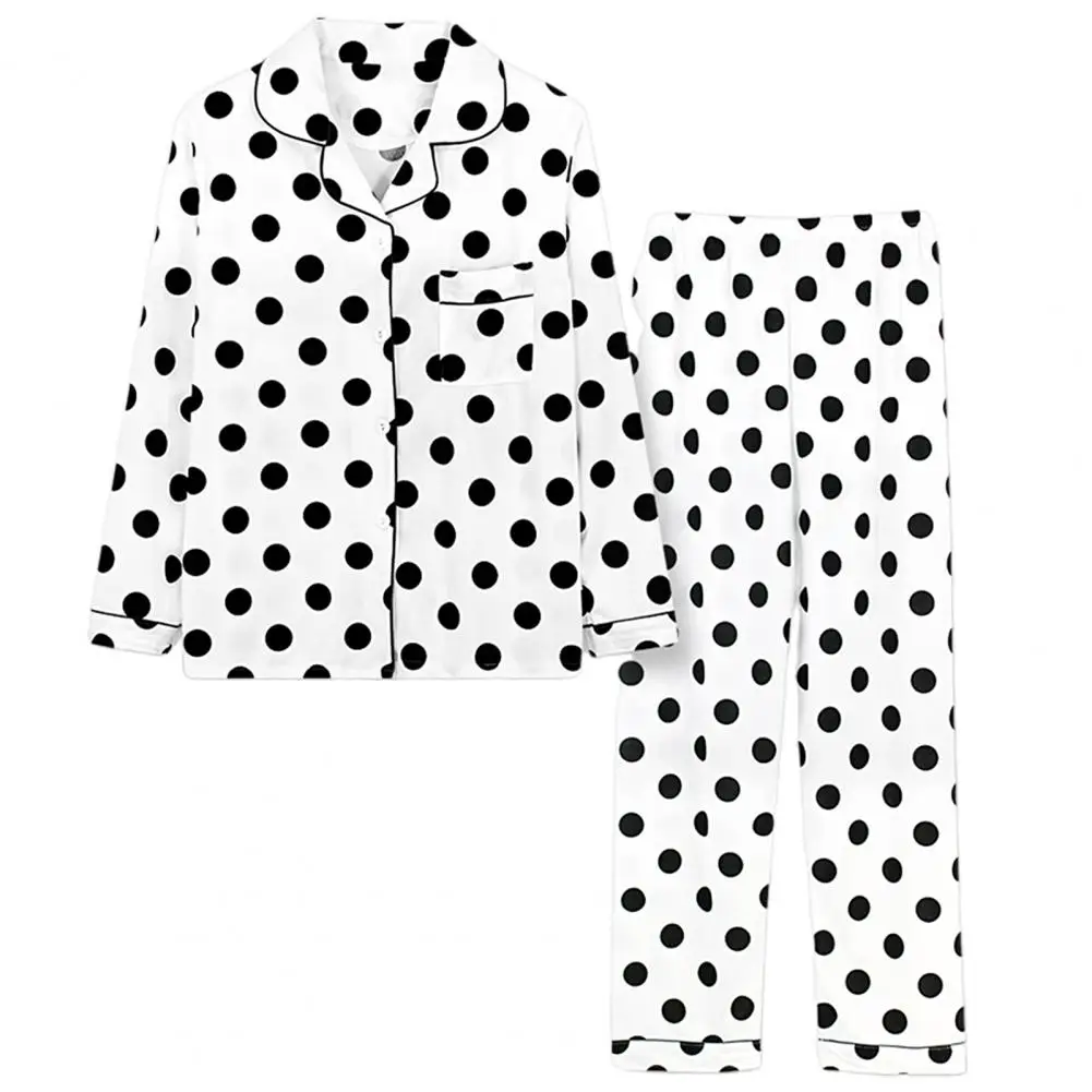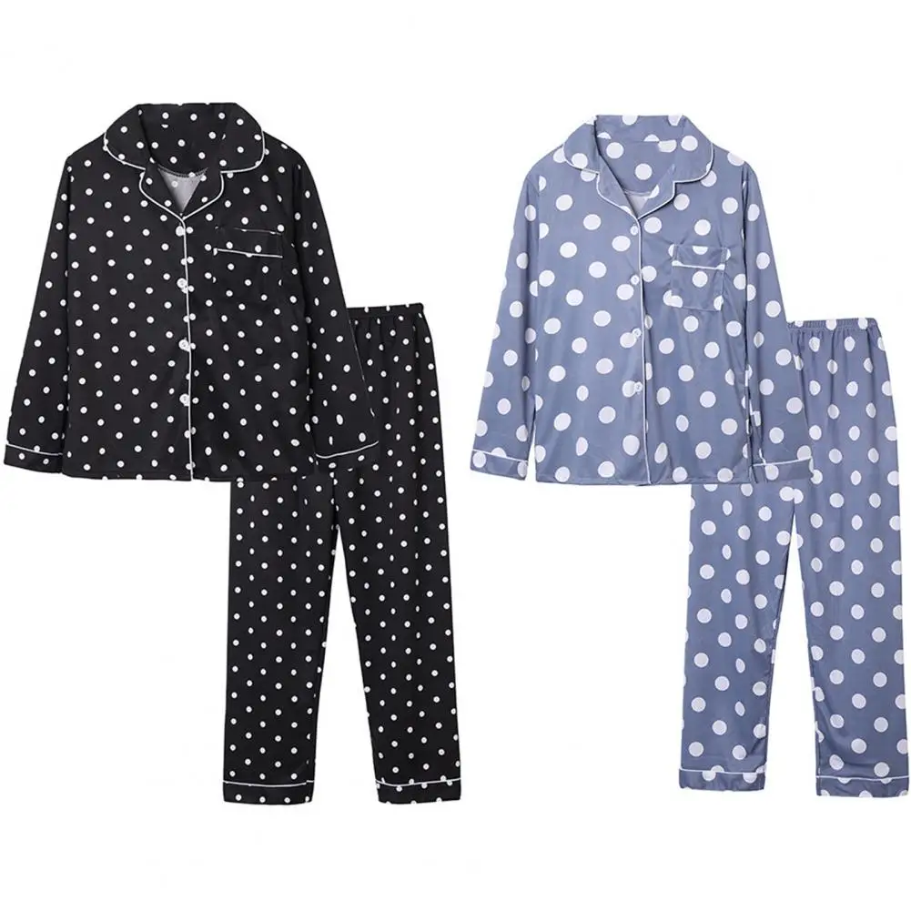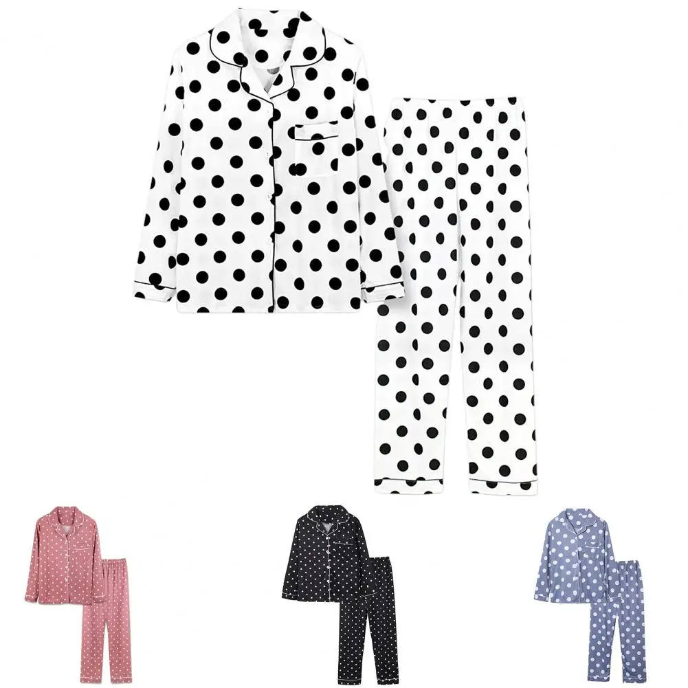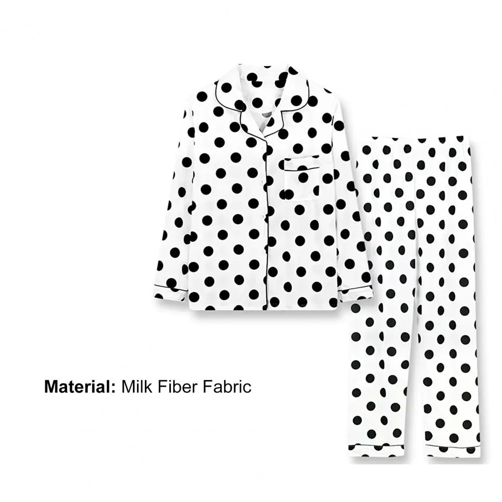 Пижамный комплект с лацканами и эластичной талией, комплект из двух предметов, Женская однобортная блузка с принтом в горошек и брюки, повседневная домашняя одежда