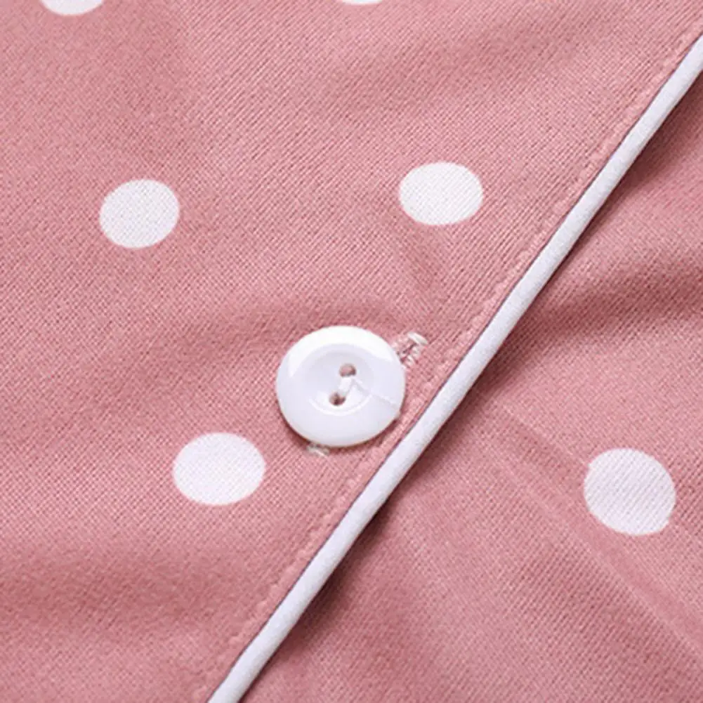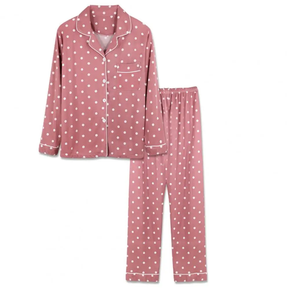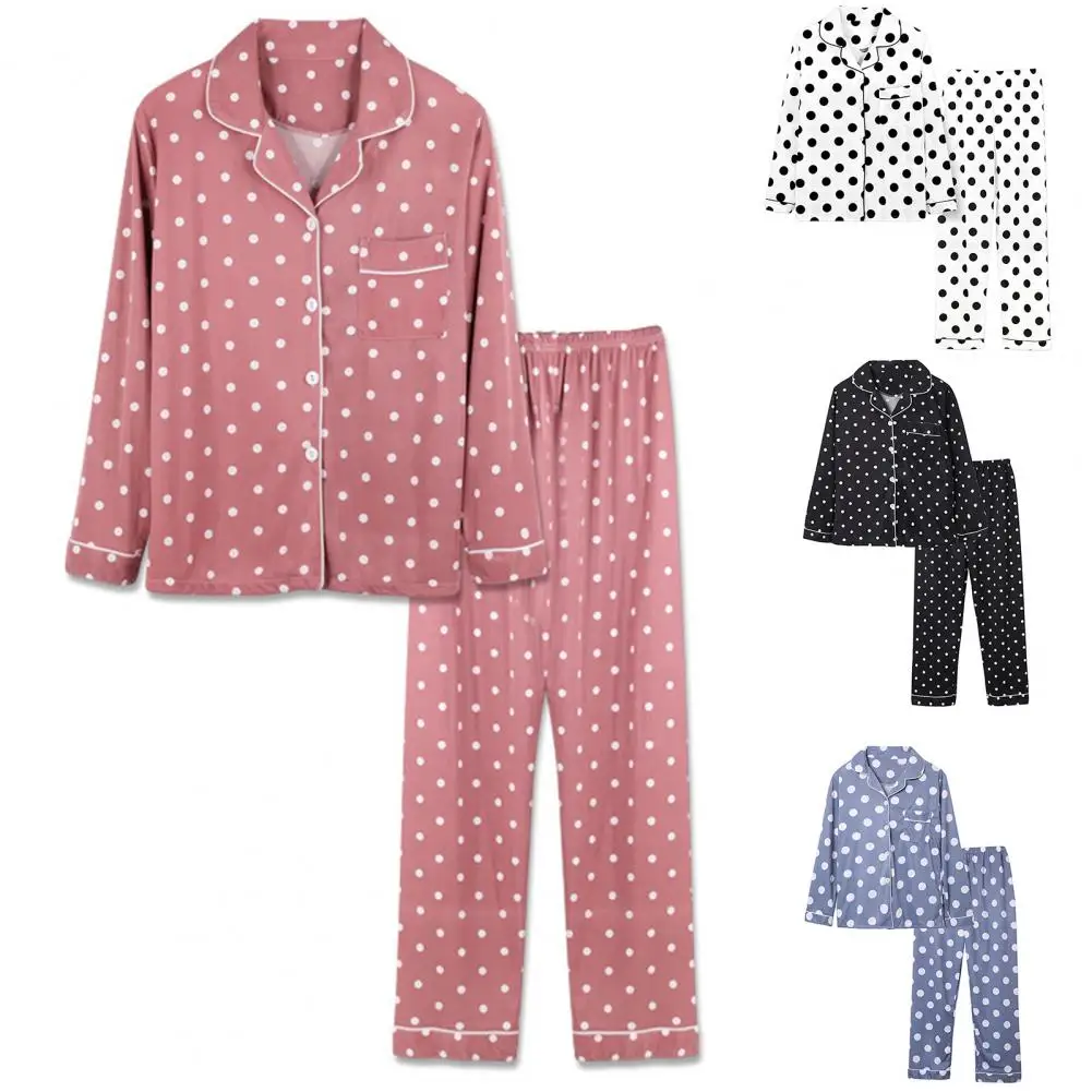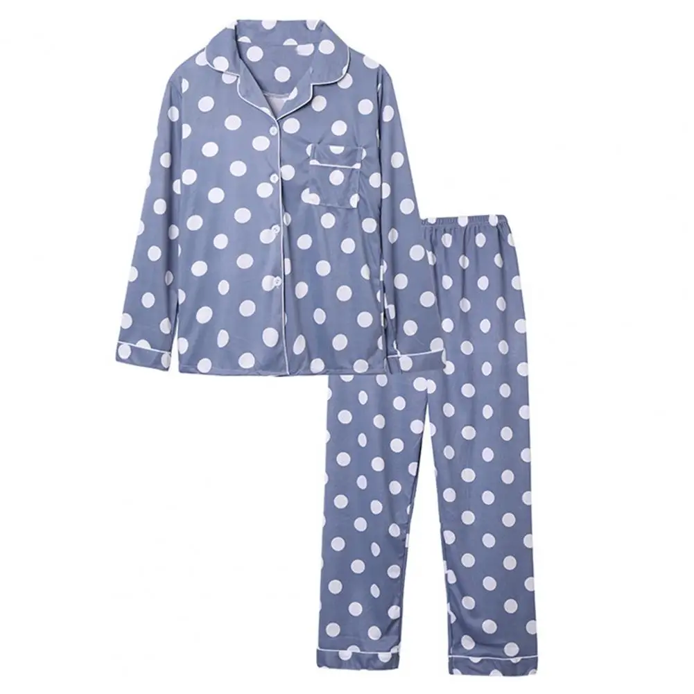 Пижамный комплект с лацканами и эластичной талией, комплект из двух предметов, Женская однобортная блузка с принтом в горошек и брюки, повседневная домашняя одежда