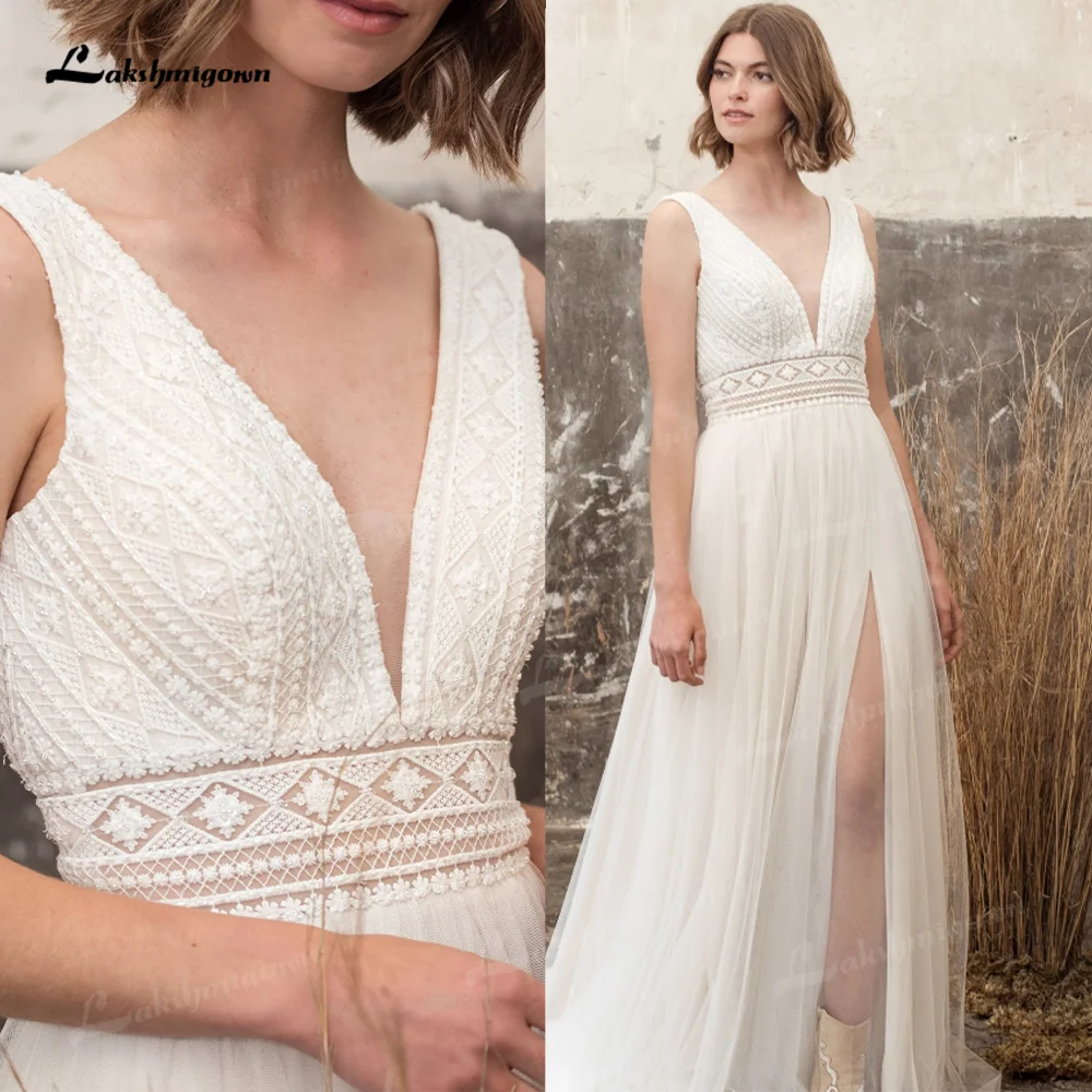 Женское свадебное платье Lakshmigown, Пляжное Платье-трапеция с V-о...