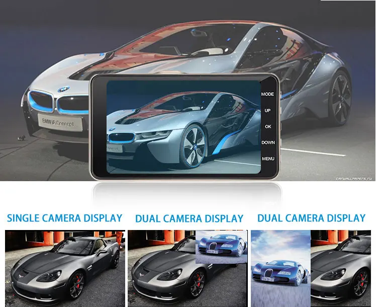 4,0-дюймовый высокой четкости ЖК-дисплей, высокая к функциональным и высокого качества позволяет вести запись качественного видео. Использование антибликового зеркала может эффективно ослабить отражение сильного и слабого светильник, что делает движение более удобным и безопасным.