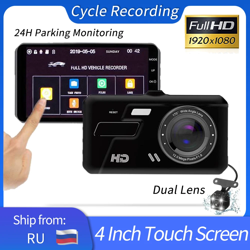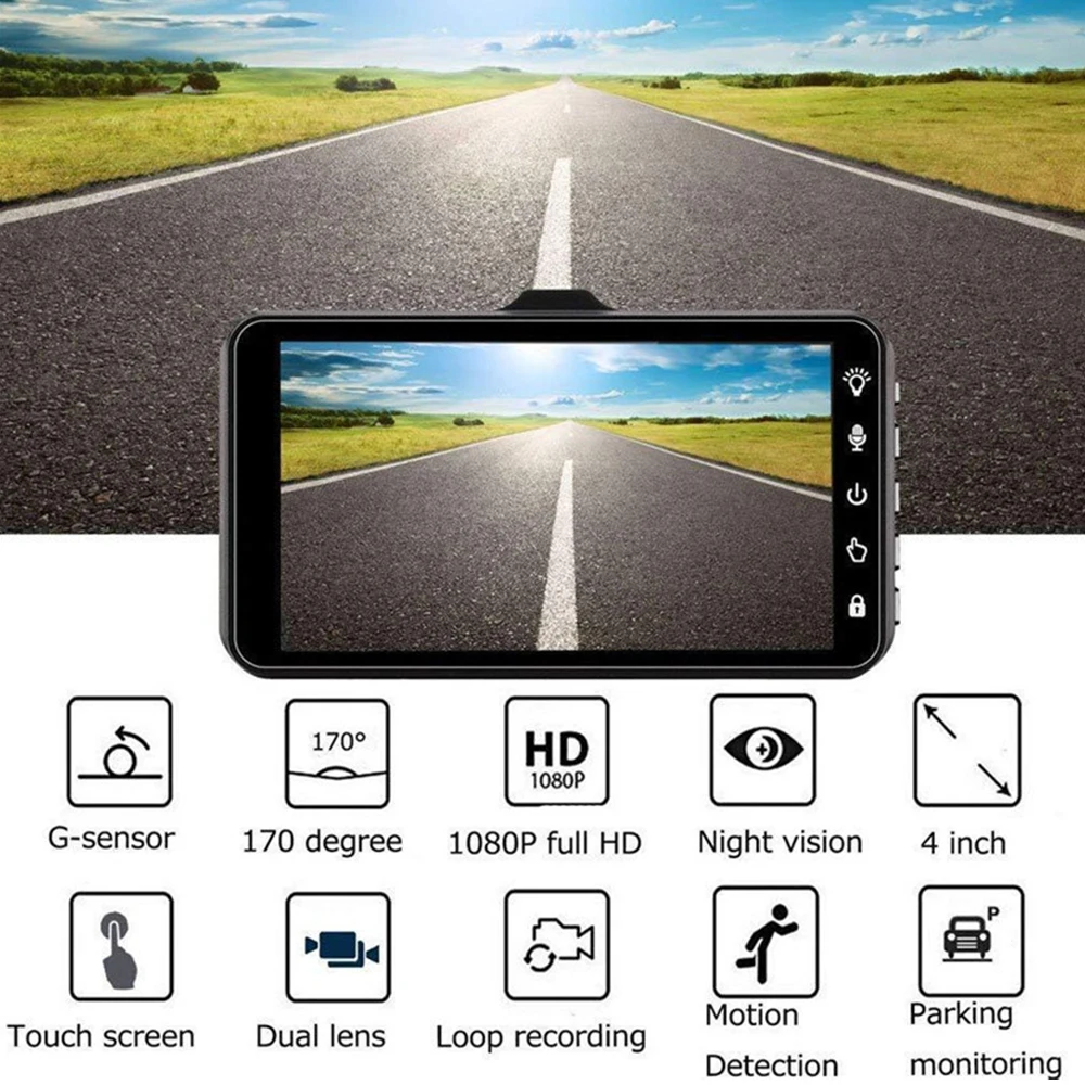 Dashcam 2.5D 4 дюйма IPS чувствительный Автомобильный видеорегистратор с сенсорным экраном 1080P Full HD 170 градусов с двумя объективами петля Запись Камера Авто Регистратор