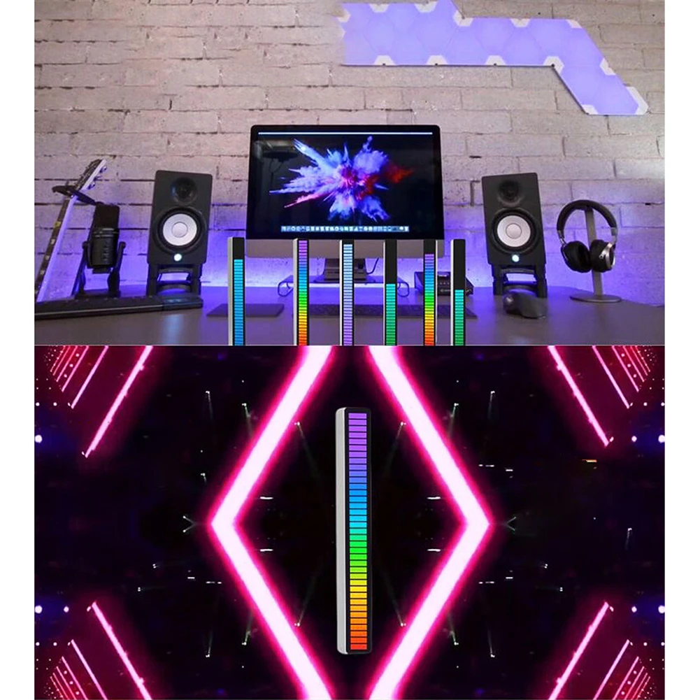Цветной RGB-светильник с управлением звуком, USBперезаряжаемая батарея, управление через приложение, 32 светодиода, управление голосом, пикап, ритм-полоса, лампа для освещения
