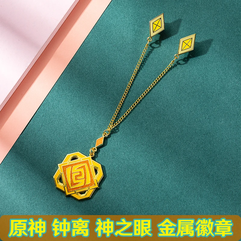 Игра Genshin Impact Zhongli Eye of God Flash Powder имитация эмали металлический значок КНОПКА брошь булавки сумка Подвеска Коллекция поклонников
