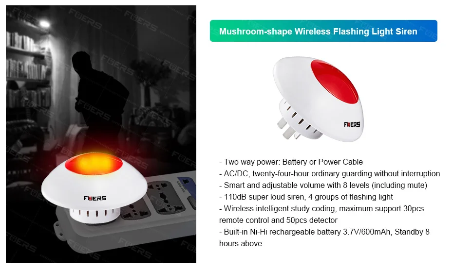 Если воры вторгаются, система сигнализации выдаст Оповещение на 80 дБ, предупредит соседей и задерживает потенциальных нарушителей встроенной сирены и проводной сирены на 80 дБ