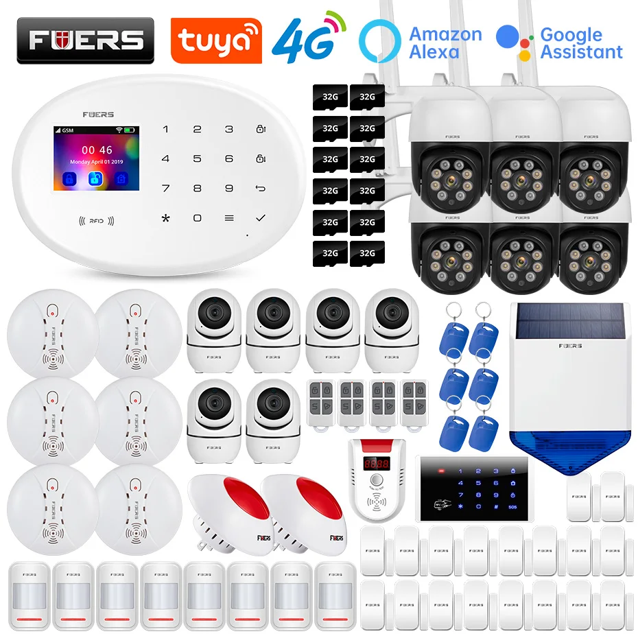 Система сигнализации FUERS Tuya Smart Home W204 4G GSM Wi-Fi, комплект беспроводной охранной сигнализации, IP-камера с управлением, автоматическая сирена
