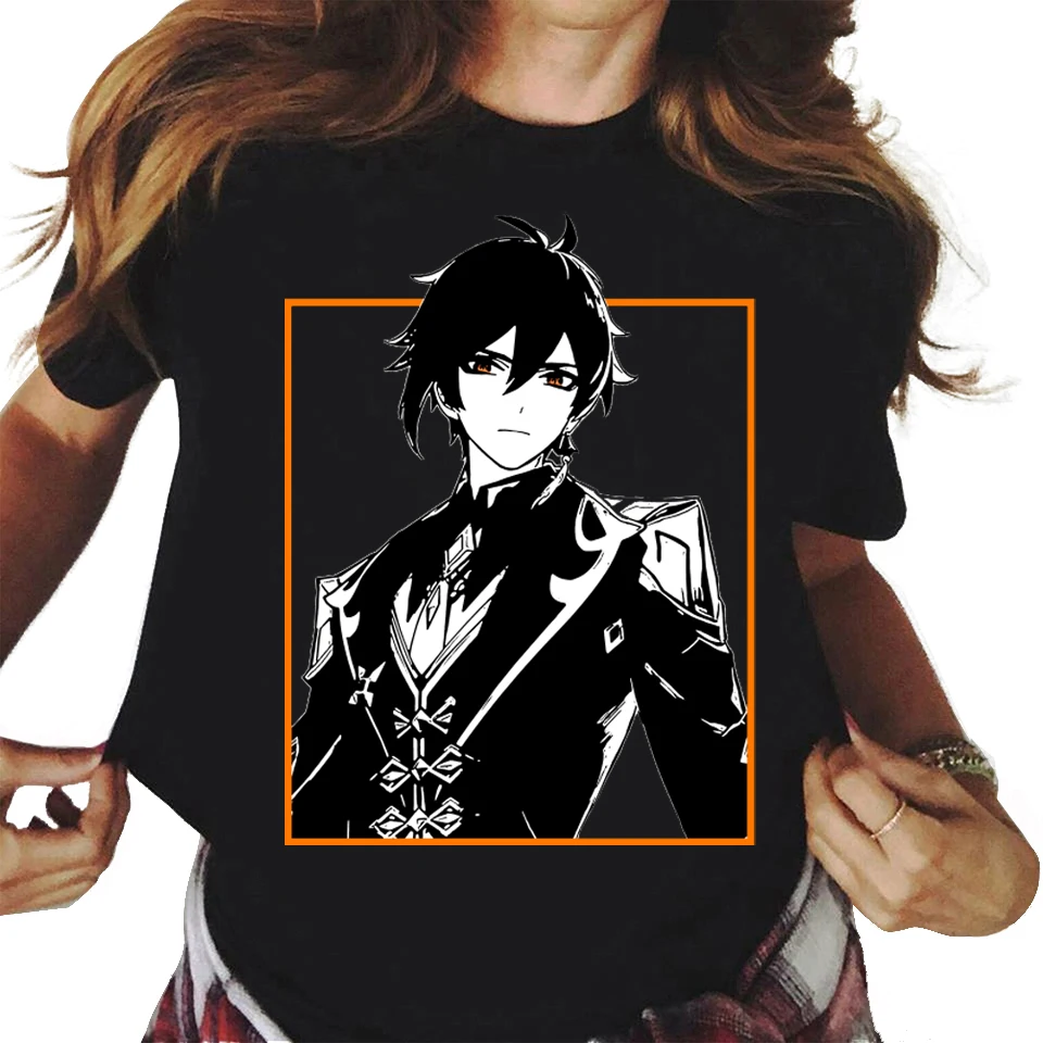 Футболка в стиле аниме оверсайз с принтом Genshin Impact, одежда в стиле Харадзюку, летняя повседневная одежда унисекс, цвет черный