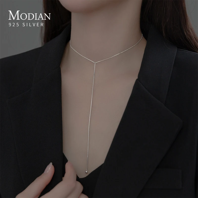 Ожерелье MODIAN в минималистическом стиле с длинной цепочкой на свитер, модное женское колье из настоящего серебра 925 пробы, изящное серебряное Ювелирное Украшение