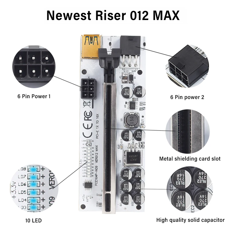 610 шт. Райзер VER012 USB 3,0 PCI-E Райзер VER012MAX Экспресс-кабель Райзер для видеокарты X16 Райзер PCI-E Райзер-карта для майнинга