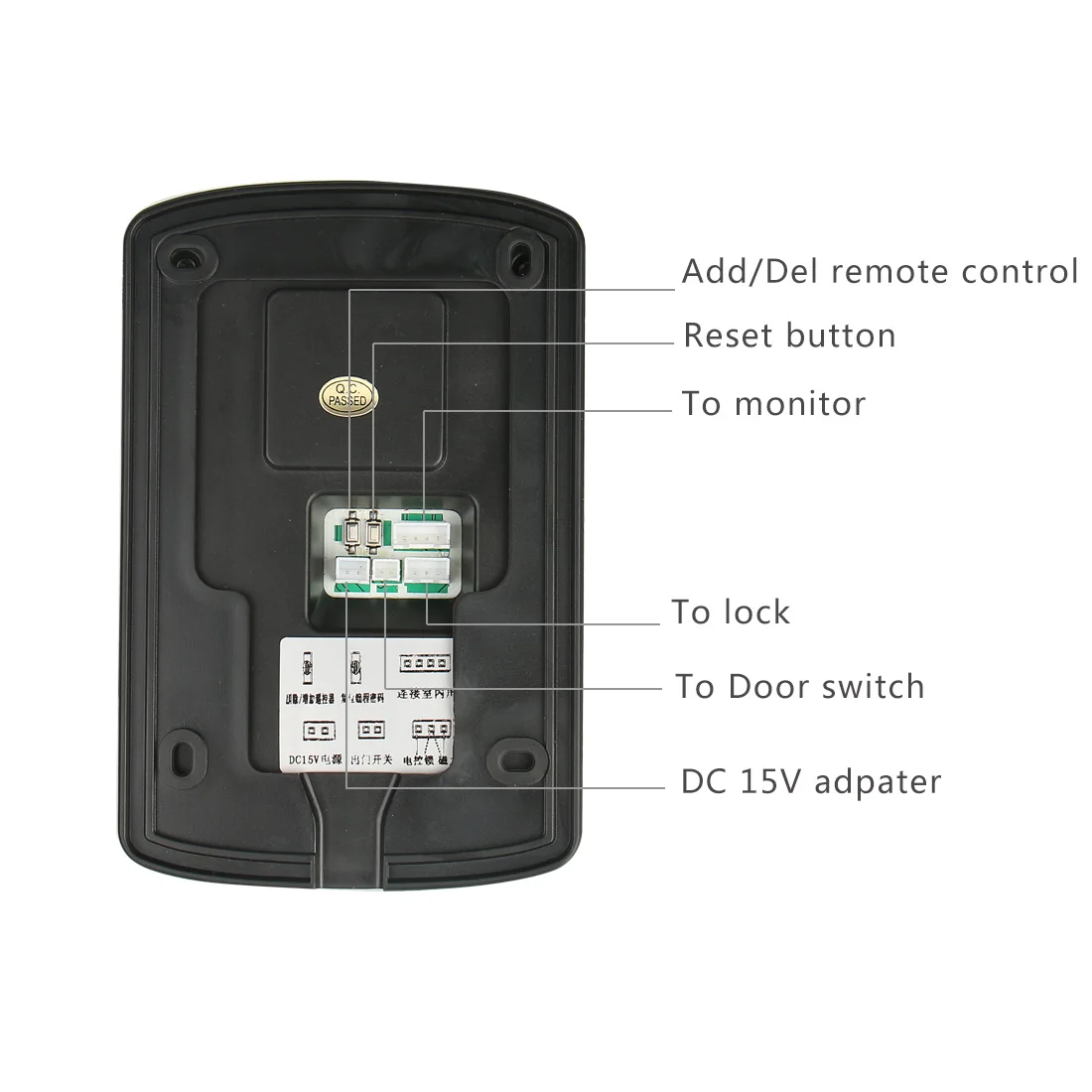 Наружная панель вызова:--- Широкий угол расширения горизонта--- 1080P HD камера.--- Угол обзора: 110 градусов--- Водонепроницаемый уровень IP55--- Светодиодный ИК офсетное освещение может получить лучший вечерний просмотр--- Поддержка записи 1000 отпечатков пальцев, 1 набор паролей, 8 пультов дистанционного управления.--- Три способа разблокировки, отпечаток пальца + пароль + Удаленная разблокировка--- Английские голосовые советы
