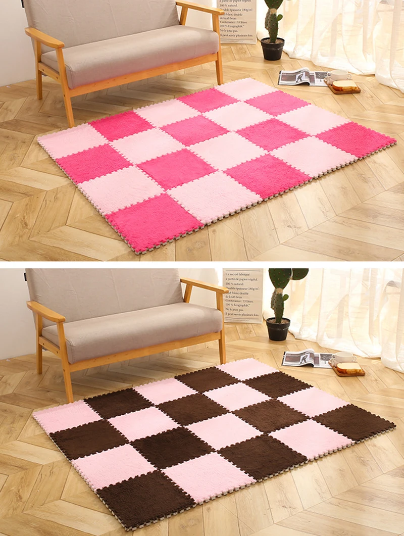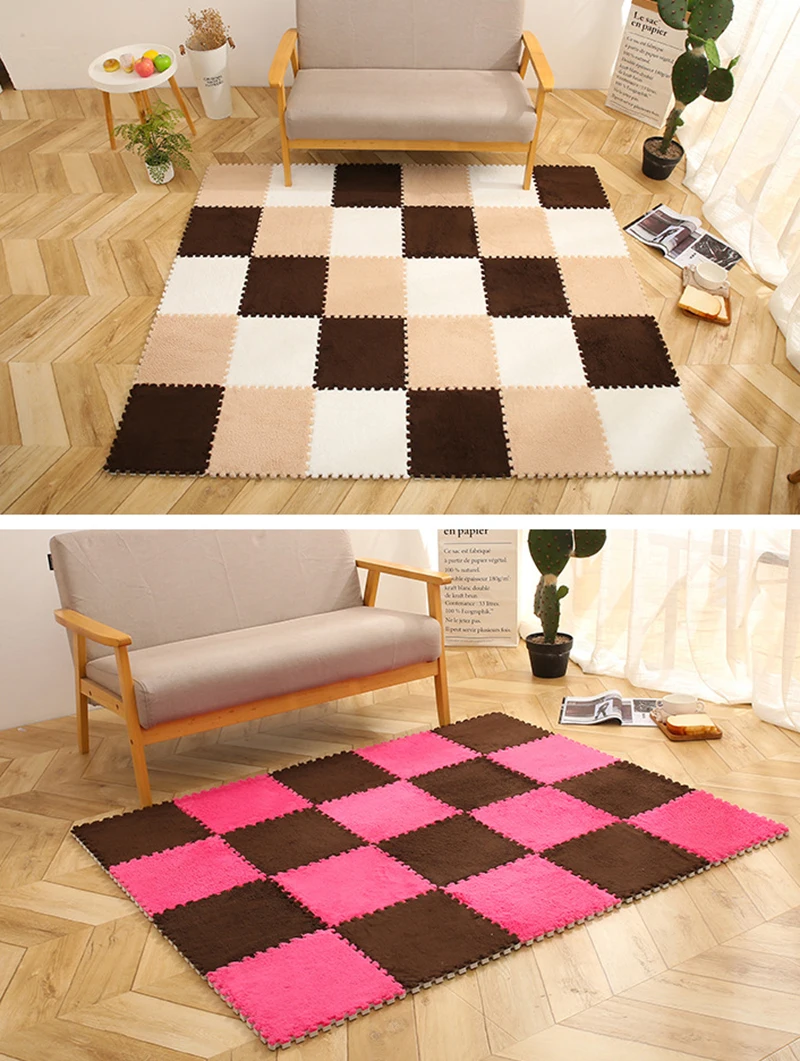 Плюшевый ковер, купите ваш любимый цвет DIY, вы можете отрезать его свободно вес преимущество: высокая плотность охраны окружающей среды EVA, более экологически чистые и толстые, 10 штук длиной до 1000 граммов каждая штука длиной около 31 см, с изысканным шифрованием и длинной бархатной противоскользящей подошвой. Плотность плотная и красивая, простая комбинированная, экологически чистая и без запаха, безопасная и нескользящая, теплая и удобная.