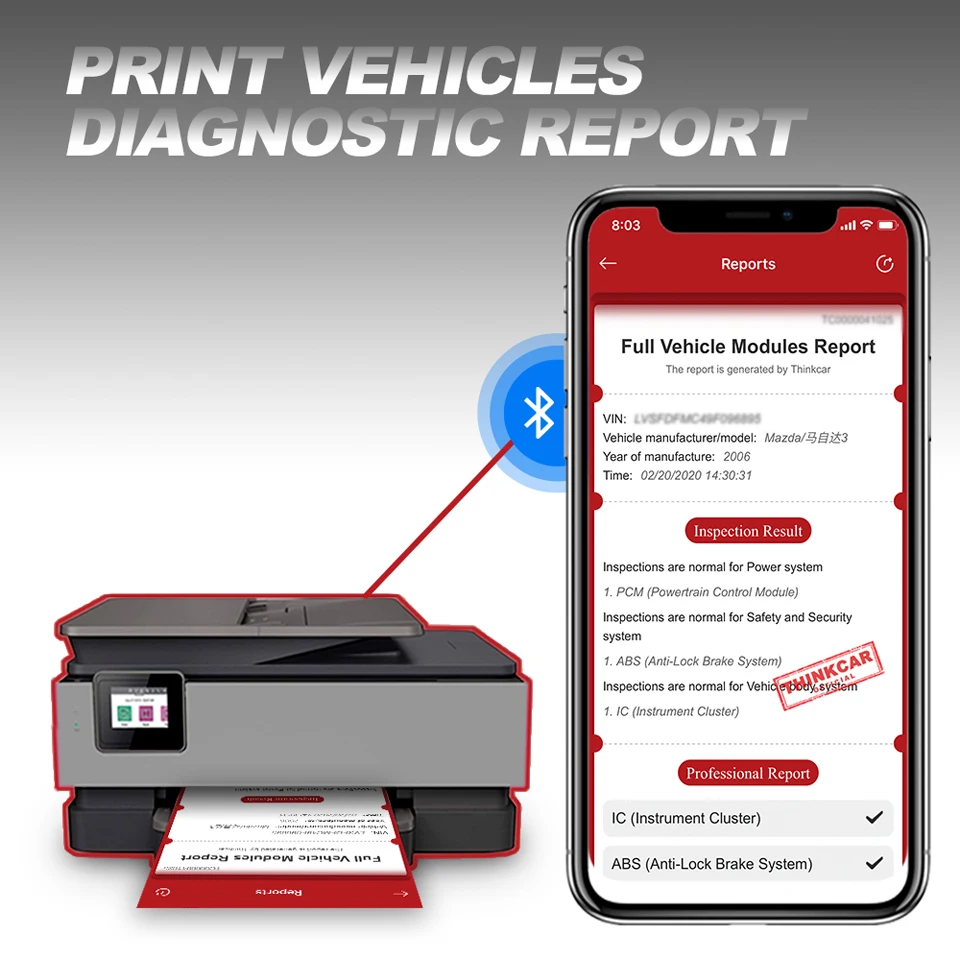 Поддержка диагностического отчета OBD транспортных средств и Печать отчета о транспортных средствах с ПК это поможет вам понять проблему автомобиля. И сообщить вам, как отремонтировать автомобиль.