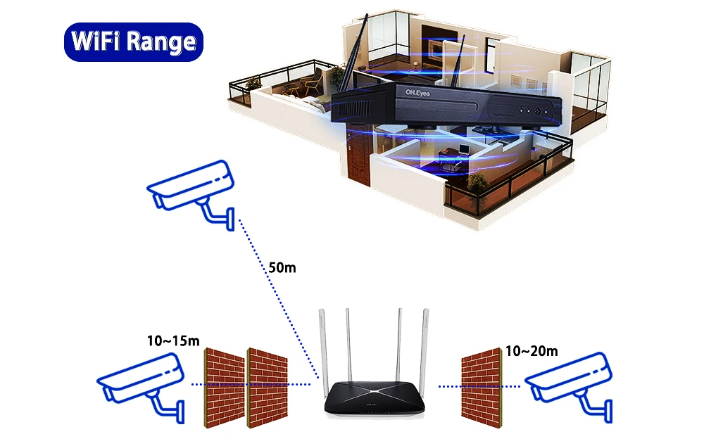 Беспроводные соединения между камерами и NVR, беспроводная передача до 50 метров (без препятствий)