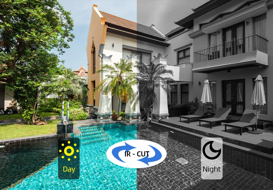 Умный фильтр, отсекающий ИК-спектр автоматически переключается между днем и ночью, чтобы уменьшить цвет в дневное время и повысить яркость изображения ночью, убедившись, что вы можете получить яркие кадры наблюдения от рассвета до темноты.
