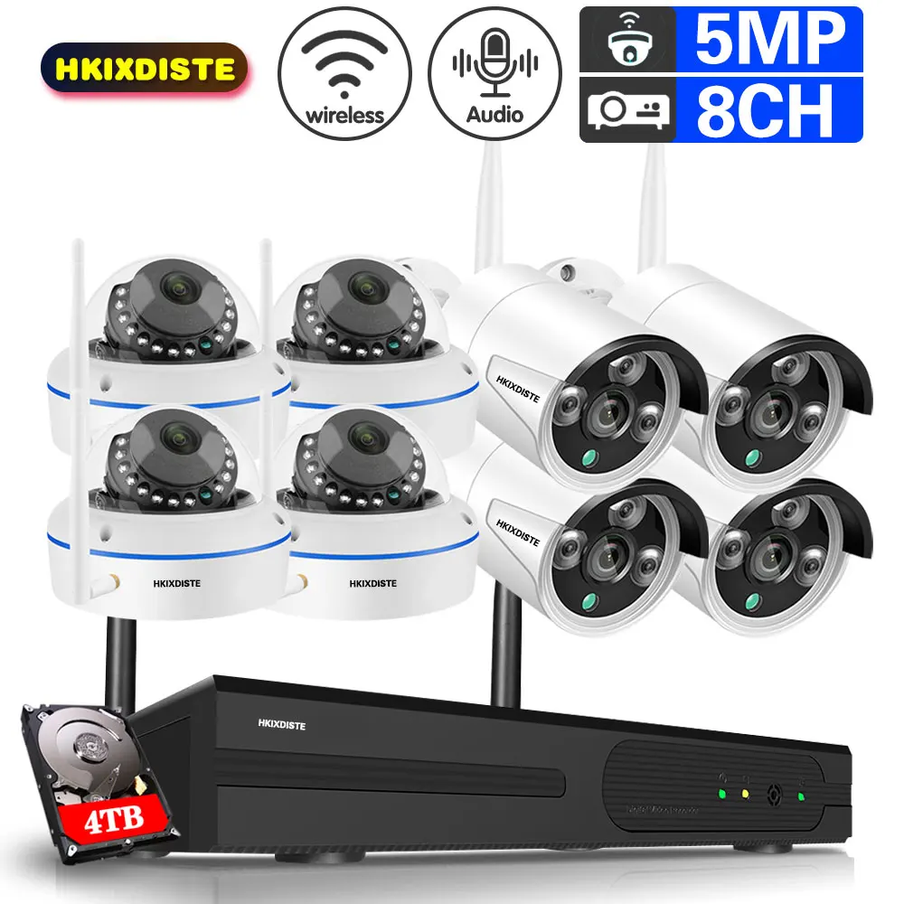 8-канальная IP-камера, Wi-Fi, NVR-комплект, система видеонаблюдения, 5 МП, наружная Водонепроницаемая цилиндрическая камера наблюдения с Wi-Fi, комплект системы видеонаблюдения, H.265