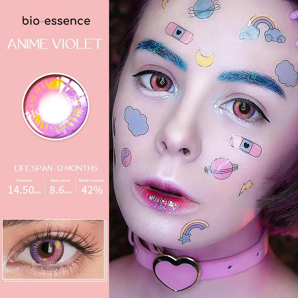Био-эссенция 1 пара фиолетовых линз Косплей цветные контактные линзы для глаз аксессуары для аниме Shinobuko линзы для убийц демонов аниме линзы