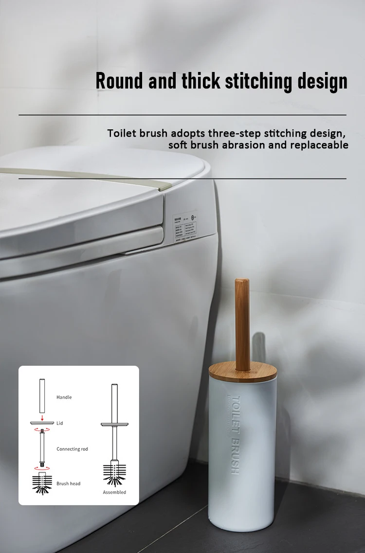 3. Держатель туалетной щетки: щетка с бамбуковой ручкой и ПП держатель основания.