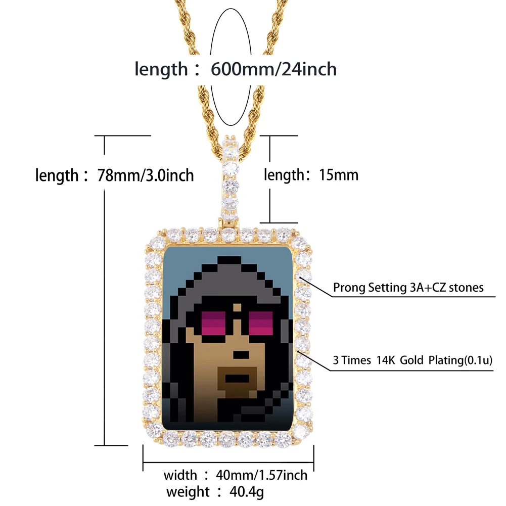 TOPGRILLZ квадратная подвеска на заказ фото NFT ожерелье для цифрового искусства и криптоарта пара кулон хип-хоп персонализированные ювелирные изделия