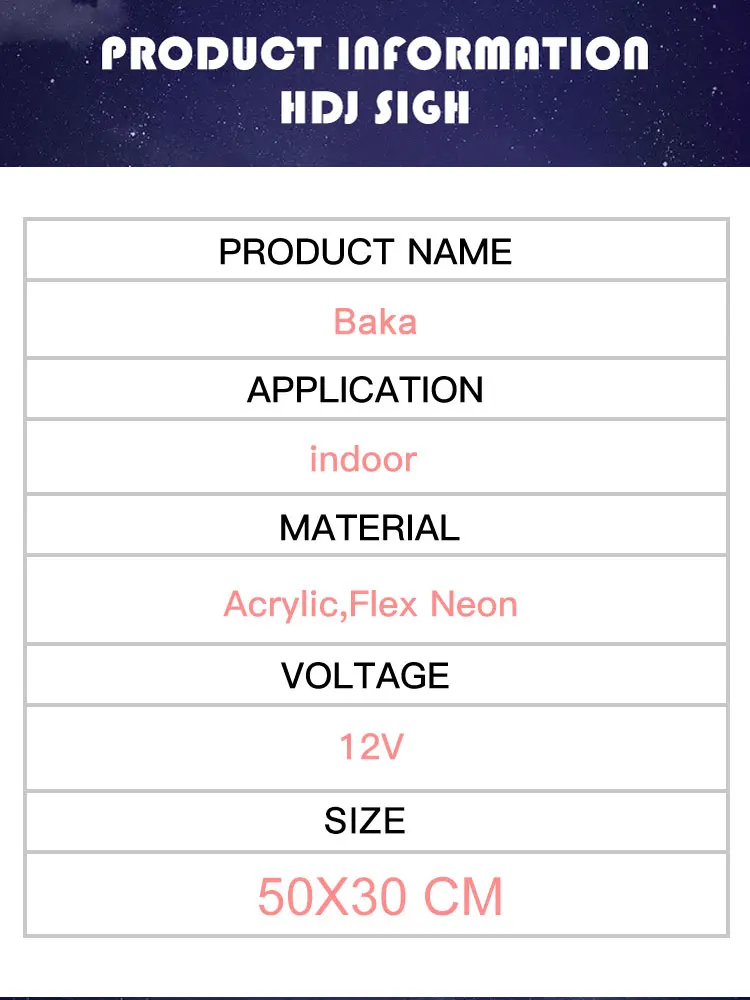 Baka пользовательский неоновый знак аниме мультфильм персонализированный дизайн японский светодиодный домашний игровой зал настенный Декор подходит для спальни девочки