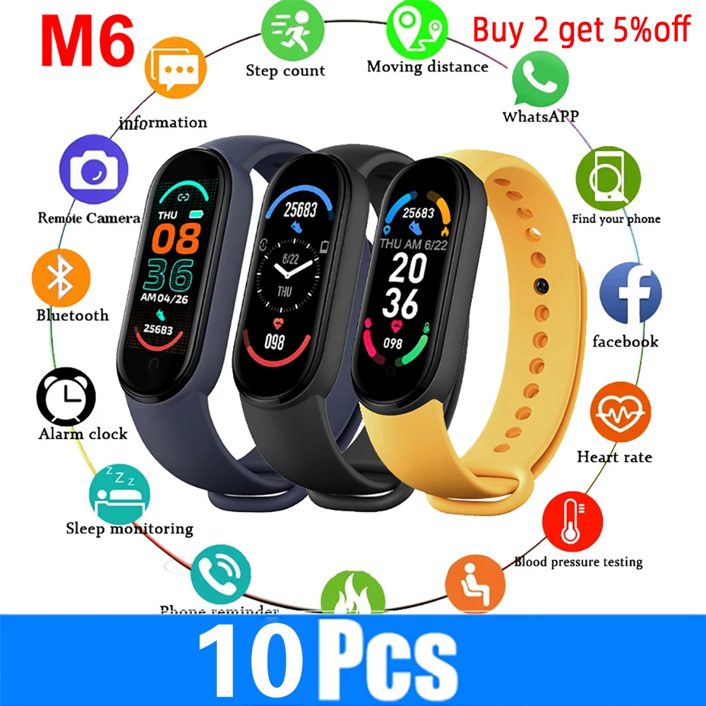 10 шт., M6 Band 6, оптовая продажа, смарт-Браслет Для Xiaomi Huawei, телефон, фитнес-трекер, часы, подходят для мужчин и женщин, Смарт-часы, спортивный браслет, умные часы 2021