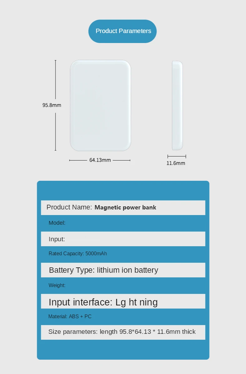 Модель продукта: Беспроводной Магнитный зарядный зажим для мобильного питания для iphone13 внешнего аккумулятора