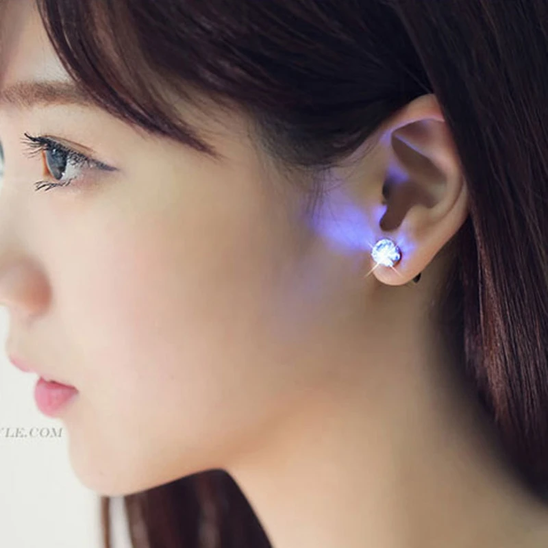 Блестящие бриллиантовые серьги-гвоздики со светодиодной подсветильник кой