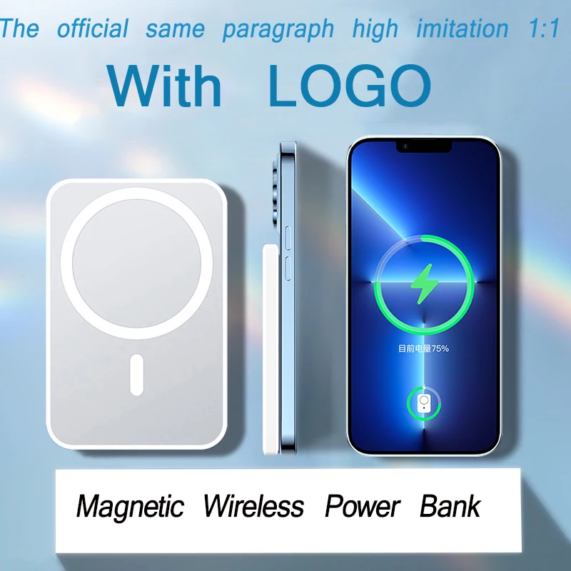 1:1 с логотипом, 10000 мАч, магнитная Беспроводная зарядка, портативный внешний аккумулятор, внешний аккумулятор для iPhone 13 12 Pro Max, внешний аккумулятор