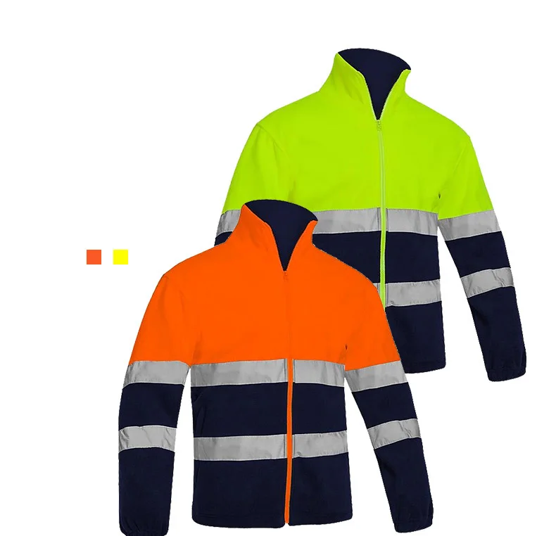 Теплая Флисовая Светоотражающая куртка для мужчин, двухцветная Рабочая куртка с молнией спереди, защитное зимнее рабочее пальто, строительная куртка
