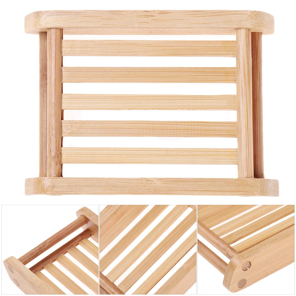 Натуральная бамбуковая деревянная мыльница для ванной комнаты, устойчивая к выпадению, портативная стойка для лотка