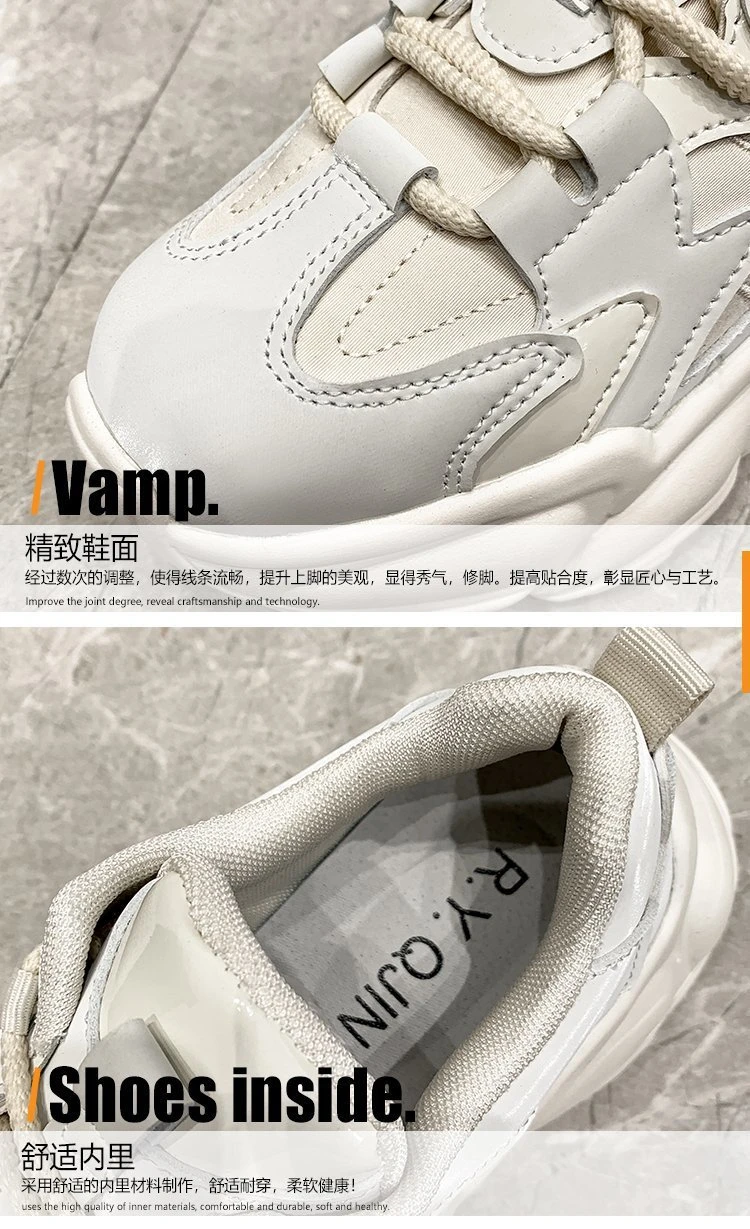 Женские массивные кроссовки на платформе, бежевые кожаные кроссовки...