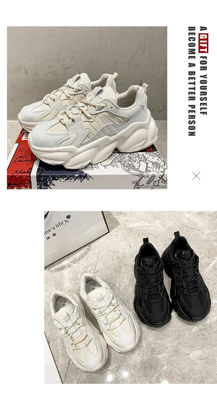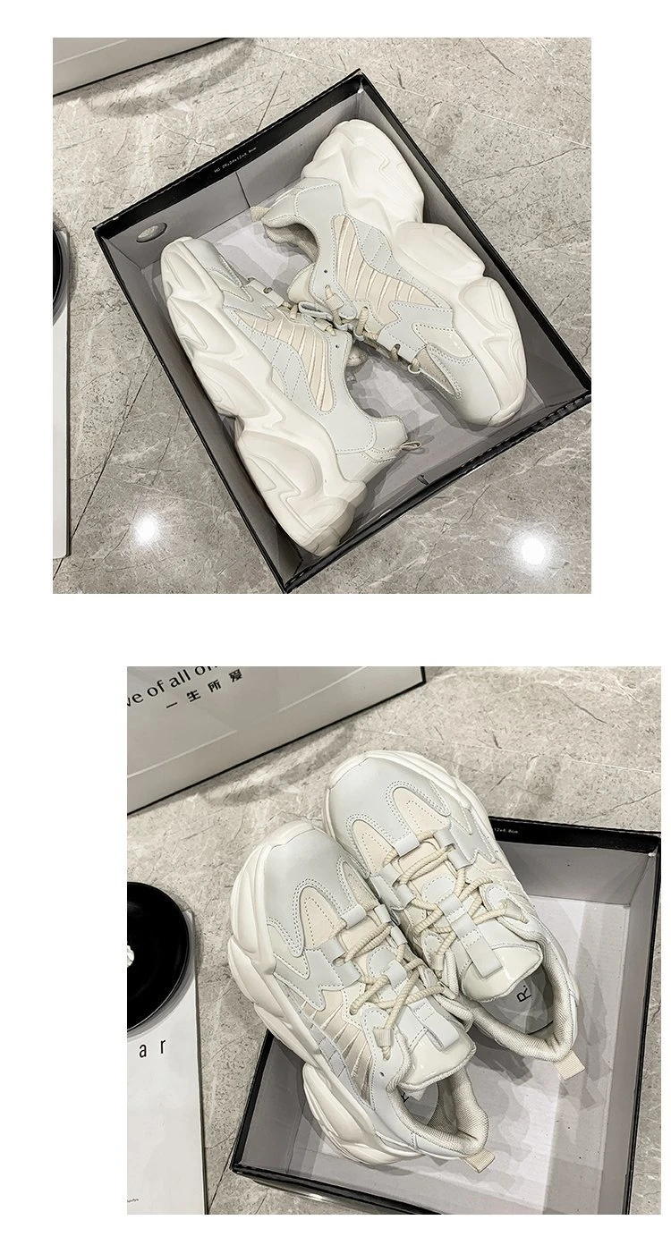 Женские кожаные кроссовки на массивной подошве, повседневная обувь для ходьбы, однотонные, толстая подошва, танкетка, белые