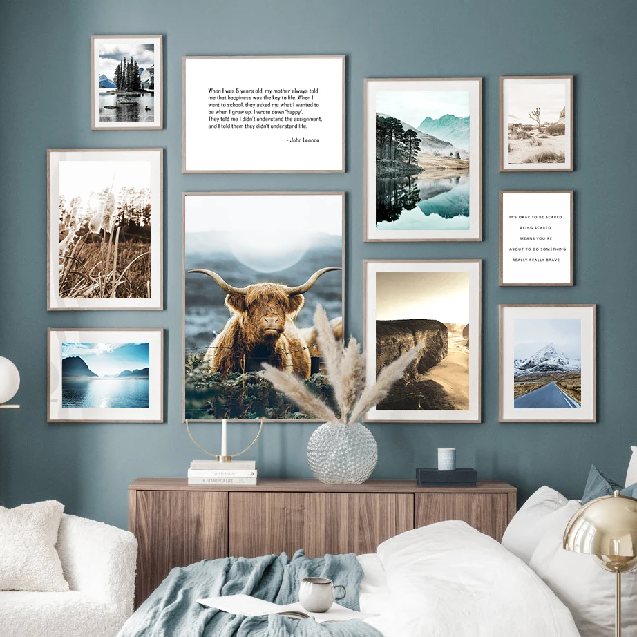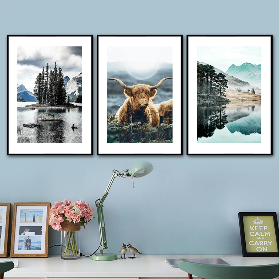 Настенная картина с рисунком тростника, озера, снега, скалы, холста, быка, настенные картины и принты в скандинавском стиле для гостиной, украшение для дома