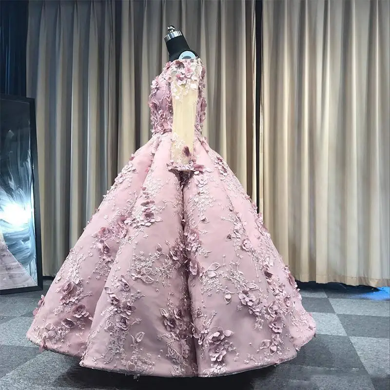 Женское вечернее платье с длинным рукавом, розовое платье с открытыми плечами и 3D цветочным рисунком, для выпускного вечера