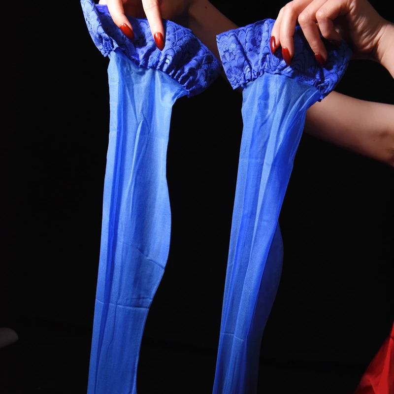 Ультратонкие прозрачные высокие чулки до бедра в стиле ретро блестящие кружевные силиконовые чулки для женщин сексуальные Чулочные изделия для клувечерние