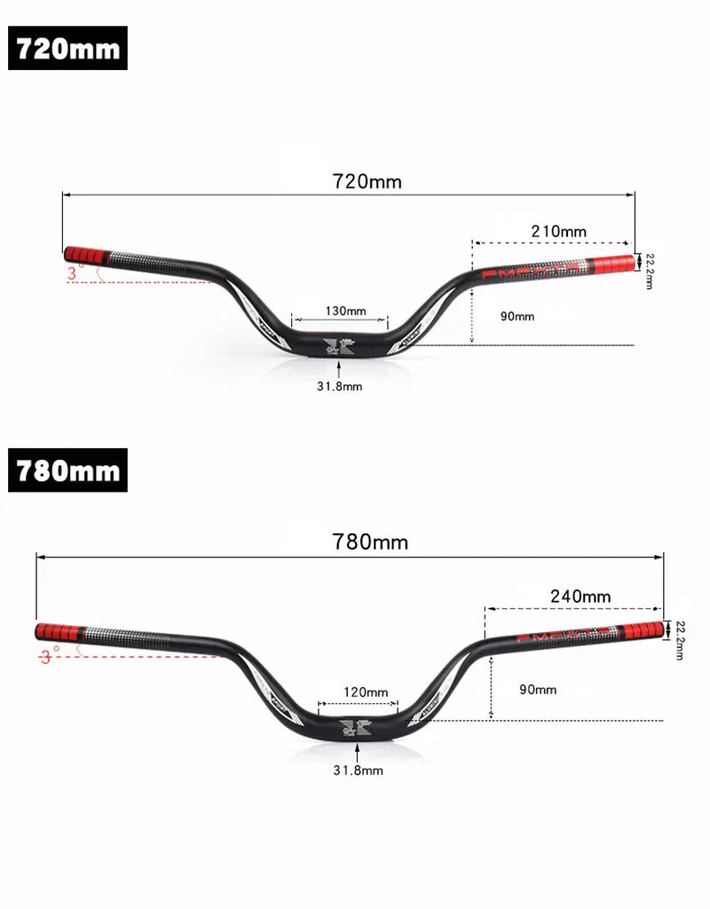 Размеры (диаметр установки * длина руля): 31,8x720 мм; 31,8x 780 мм