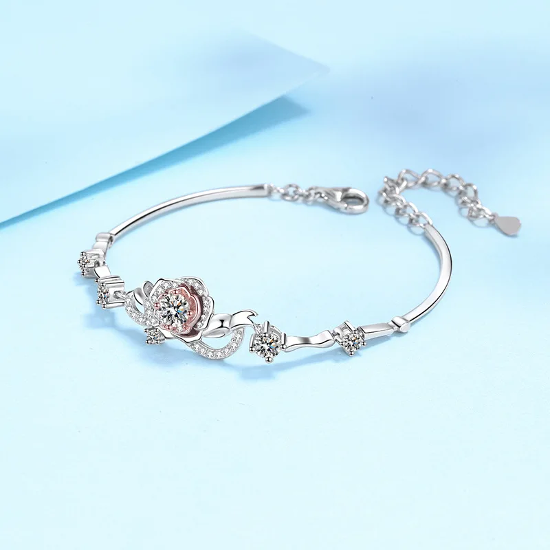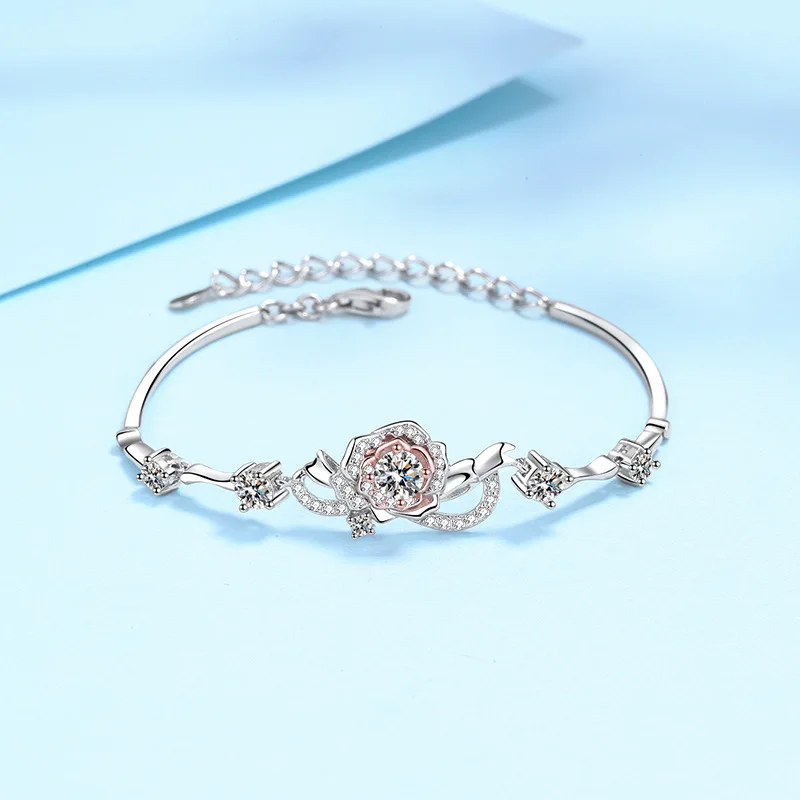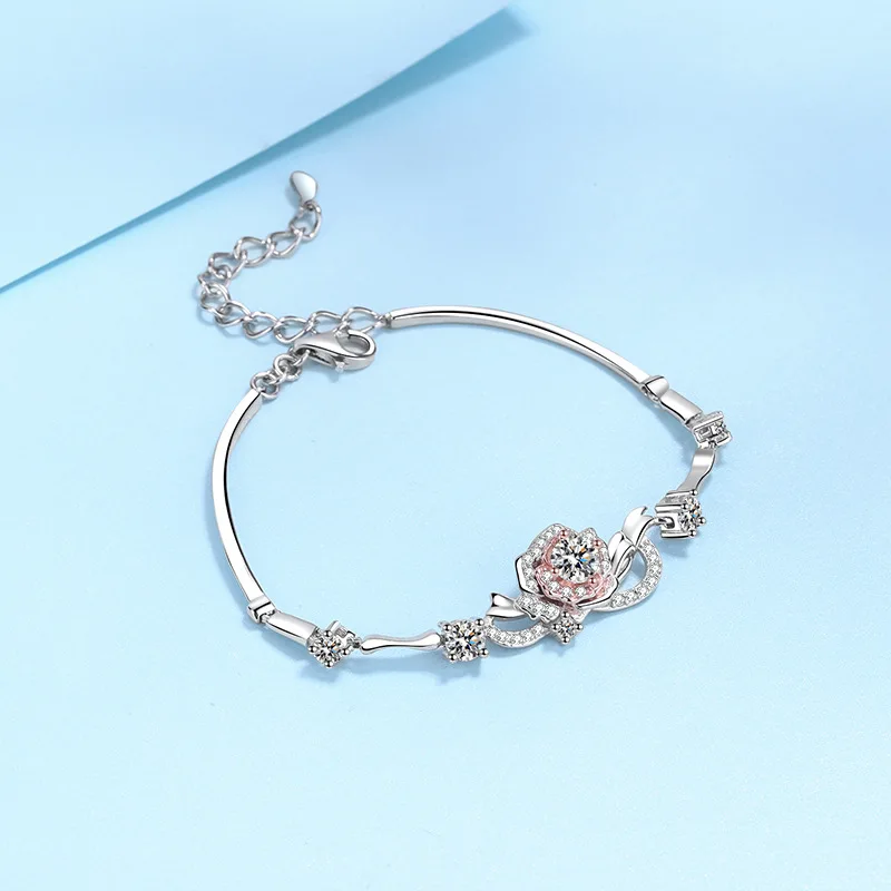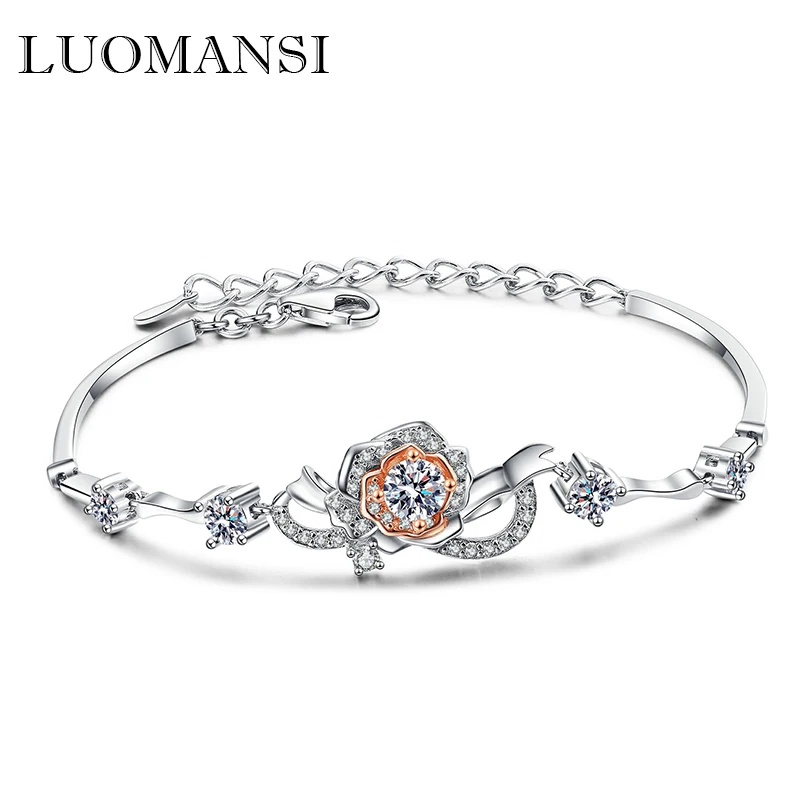 Luomansi, 1.5 карат, Муассанит, серебряный браслет с розовым цветком для женщин 100%-S925, серебряные ювелирные изделия, подарок на свадьбу, годовщину вечерние ринку