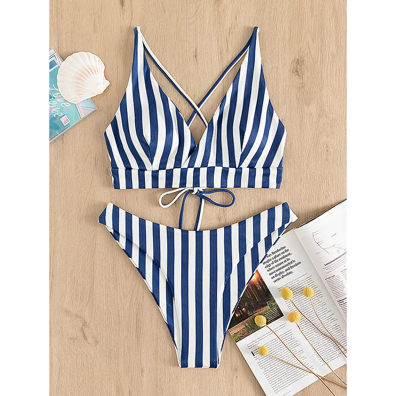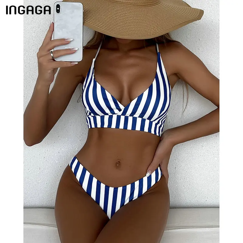 Полосатый комплект бикини INGAGA, сексуальный женский купальник на шнуровке, женское бикини с эффектом пуш-ап 2022, пляжная одежда с перекрестными лямками, новинка