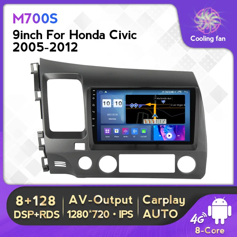 Автомобильный мультимедийный проигрыватель с GPS-навигацией, экран 8 + 128 ГБ, 9 дюймов IPS, Android 11, для Honda Civic 2005, 2006, 2007, 2008, 2009-2012