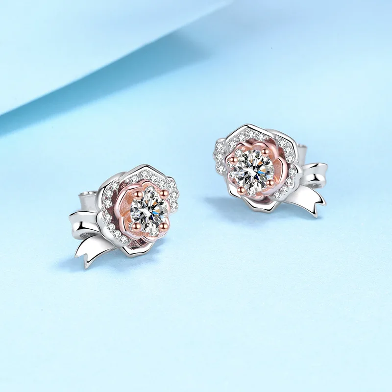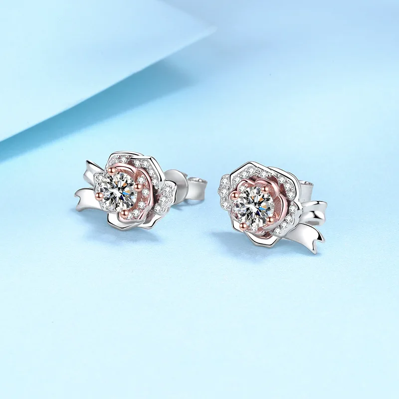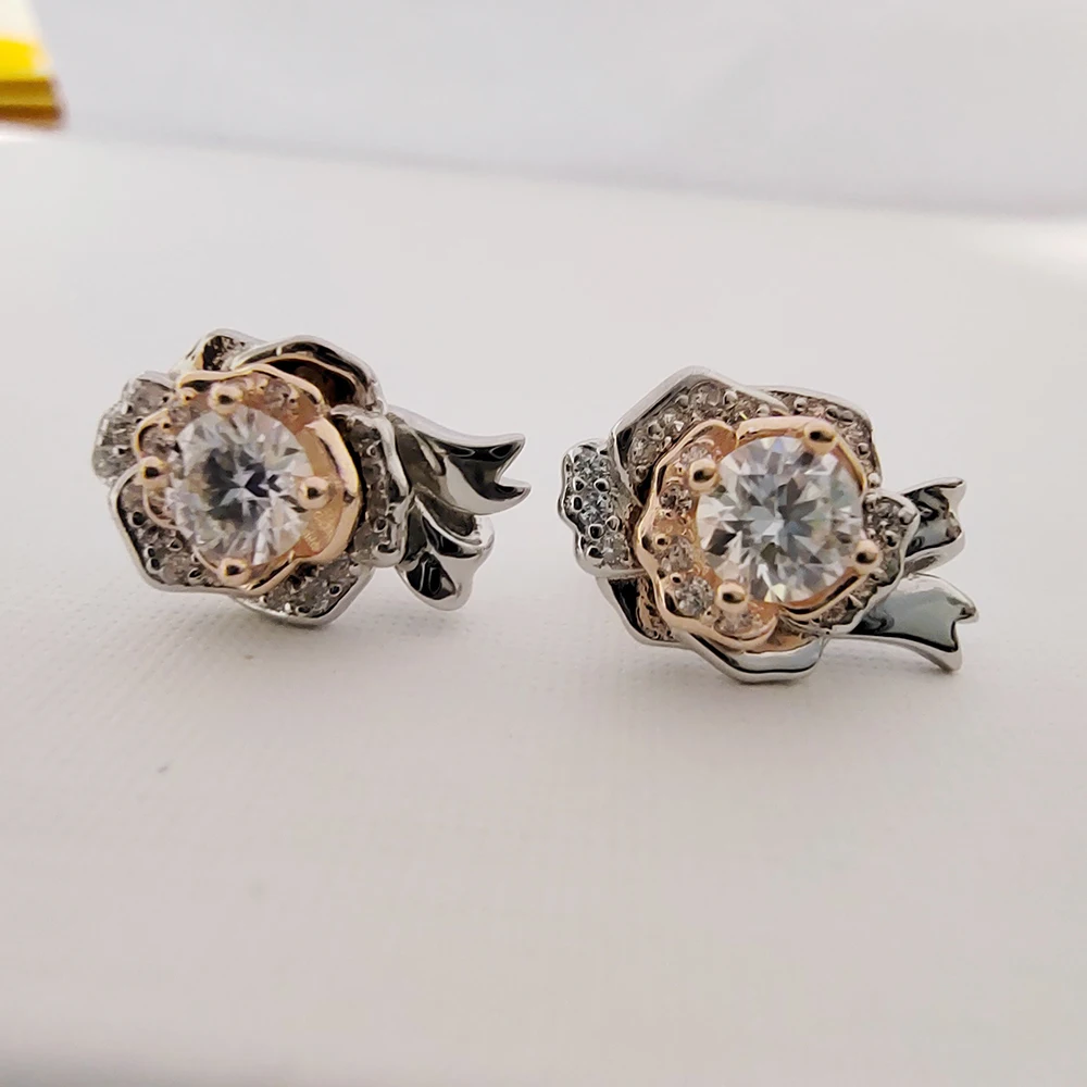 0.5 карат муассанит розы женские серьги-гвоздики 100%-S925 серебряные ювелирные изделия на годовщину свадьбы Вечерние подарок