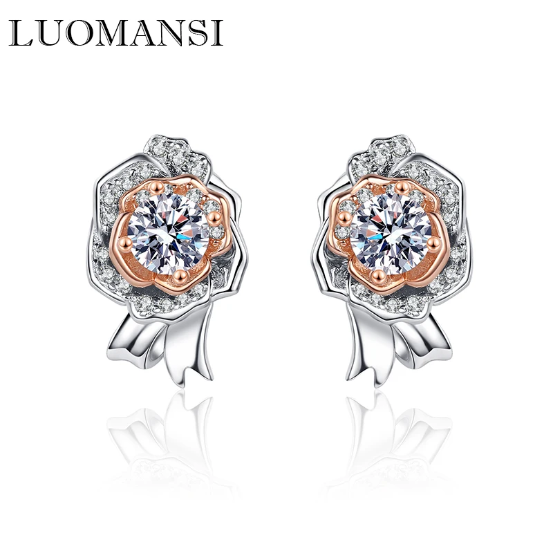 Luomansi, 100% карат, Муассанит, роза, цветок, женские серьги-гвоздики-S925, серебряные украшения, подарок на свадьбу, годовщину вечерние ринку