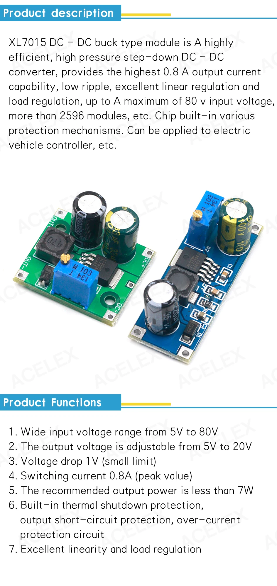 XL7015 5V-80V DC-DC 0.8A Dc преобразователь, понижающий модуль, широкий вход напряжения XL7005A LM2596