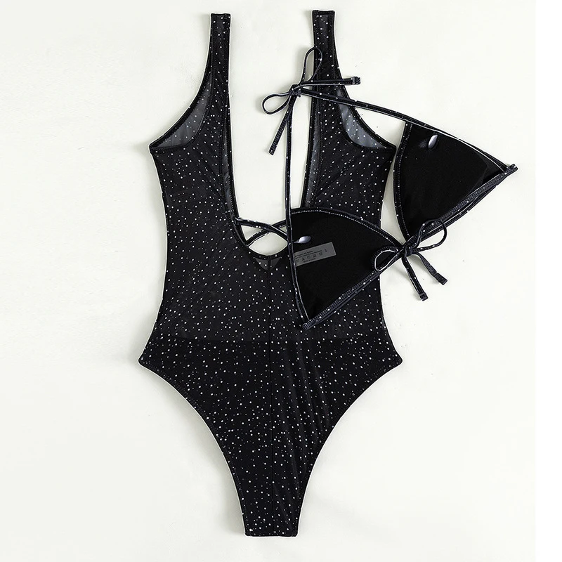 INGAGA сексуальный слитный купальник с V-образным вырезом, черный к...