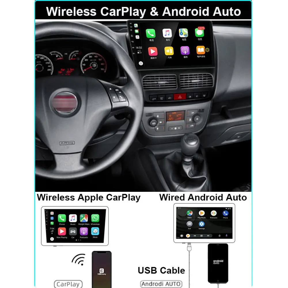 Автомагнитола 9 дюймов, Android 11, для Fiat Doblo 2010, 2011, 2012, 2013-2019, мультимедийный видеоплеер, навигация для Carplay, Wi-Fi, радио, 2 din