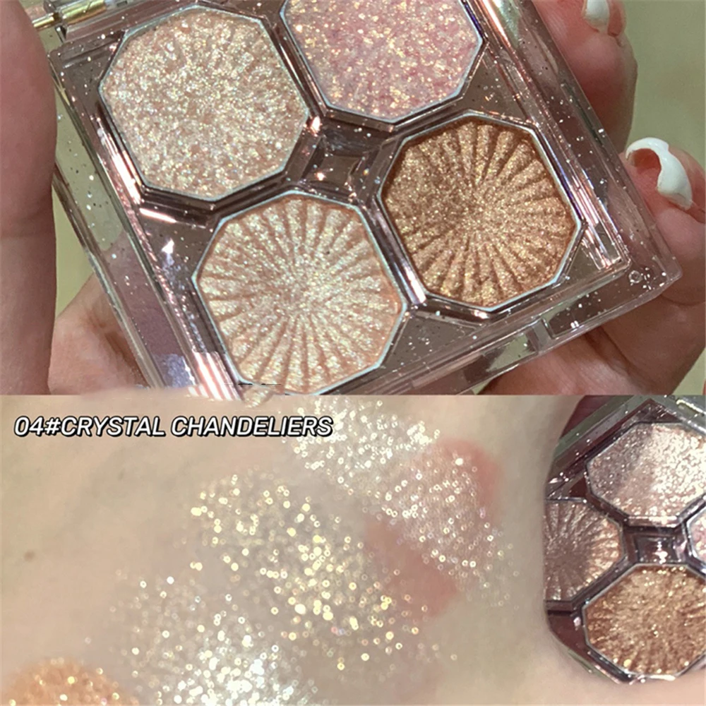 Палетка жемчужных теней для век четырех цветов, яркие матовые мерцающие хрустальные люстры, блестящие тени для век, стойкий пигмент, косметика